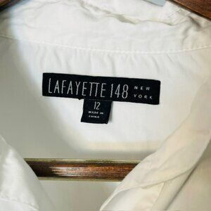 Lafayette 148 Cotton Poplin Stretch Tunic Button Down Shirt White Size 12