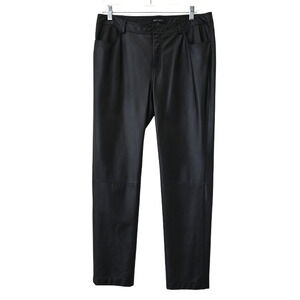 Lafayette 148 Cropped Pants Size 10 Black Leather Straight Leg High Rise Sleek
