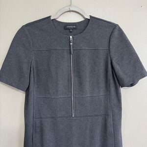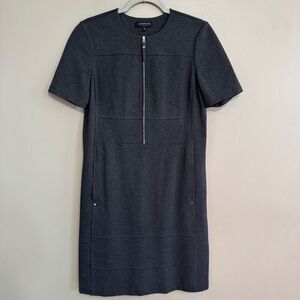 Lafayette 148 Demi Punto Milano Zip-Up Dress Gray Shift Short Sleeve small