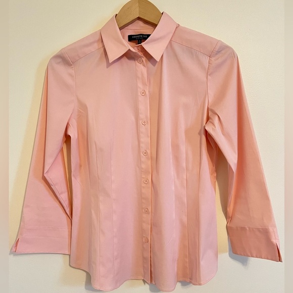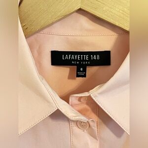 Lafayette 148 Designer Women Button Up Shirt sz 6 Peach Pleated Business Casual
