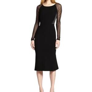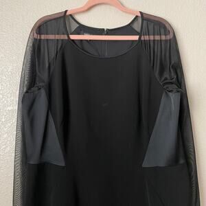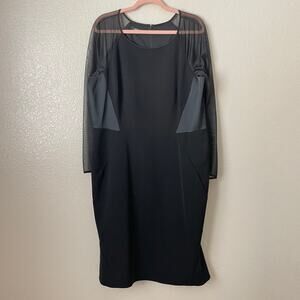 Black Regina Sheer Long Sleeve Dress Lafayette 148 Size 16