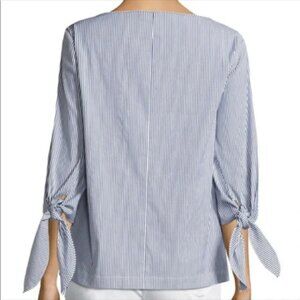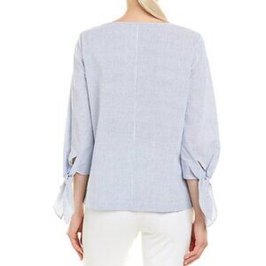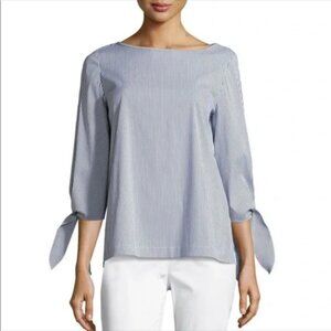 Lafayette 148 Elaina Bow Tie Sleeve Striped Blouse S