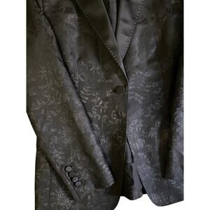 Lafayette 148 Flora Bloom Wool Silk Blazer US 8 Jacquard Suit Jacket Black Tie