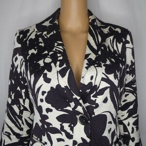 Beautiful dark brown and off-white floral blazer. Sophisticated cut and great detailing. 100% cotton, in excellent condition.