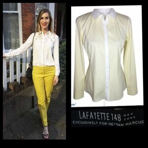 Lafayette 148 For Neiman Marcus Pale Yellow Button Down Career Blouse Size 4●