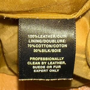 Flawed condition - no rips/holes but there are various stains on the leather on the front, sleeve, and back (see last 4 photos)