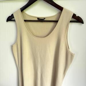 Lafayette 148 Gold Tan Crewneck Tank Top Medium Designer Quiet Luxury Staple