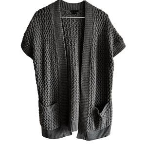 Lafayette 148 Gray Crochet Open Front Cardigan Size M Short Sleeve Capsule