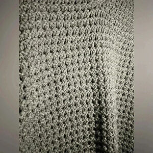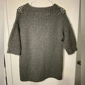 Lafayette 148 Gray Heavy Cotton Open Knit Chunky Short Sleeve V Neck Sweater