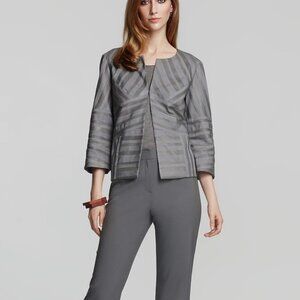 Lafayette 148 Gray Striped Hook & Eye 3/4 Sleeve Leather Jacket | Size 18