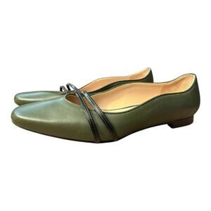 Lafayette 148 Green Leather Flat Women size 37.5 US 7.5