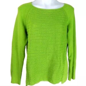 Item: Women's Green Open Knit Crochet Boat Neck Sweater