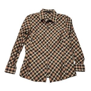 ✨Lafayette 148 - Grey & Orange Plaid Button Down Sz 4✨