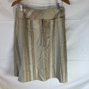 Lafayette 148 Heather Neutrals Brown Linen/Silk Striped A-Line Skirt Sz 10