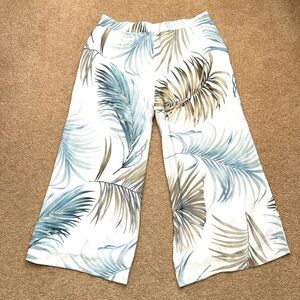 Lafayette 148 Hester Palm Print Leaves High Rise Wide Leg Cropped Pants Size XXL