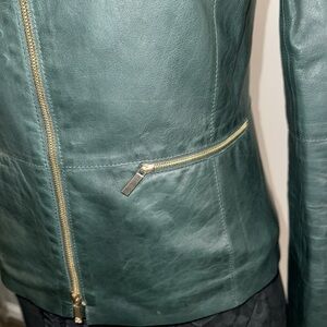Lafayette 148 Hunter Green Cropped Leather Jacket