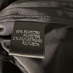 Blazer style in a slick seersucker fabric. Roll tab sleeves. Pockets at chest and hips. Classic black. Lined. Really pretty.