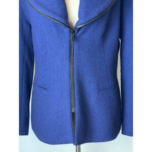 Lafayette 148 Jacket Women 6 Royal Blue Zipper Front Wool Blend Coat Luxury
