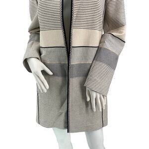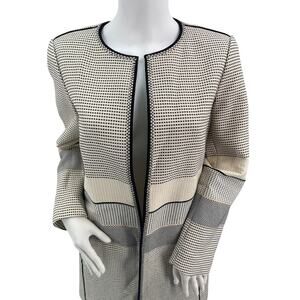 Lafayette 148 Jacket Women's Sz 10 PRIA Coat Open Striped Tan Black Designer