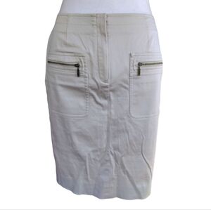 Lafayette 148 Khaki Front Zippered Pocket Pencil Skirt Knee Length Cotton Size 4