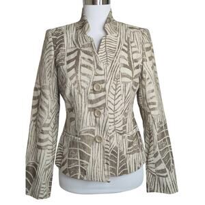 Lafayette 148 Leaf Patterned Blazer Zebra Stripe Tan Khaki Mandarin Type Collar