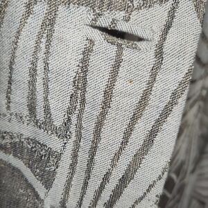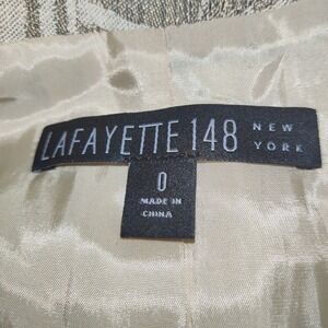 Lafayette 148 Leaf Patterned Blazer Zebra Stripe Tan Khaki Mandarin Type Collar. In good preowned condition. No holes, one small splatter type stain by button.