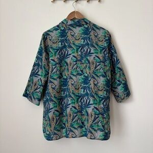 Lafayette 148 Botanical Print Silk Blend Button Front Shirt Medium