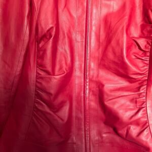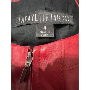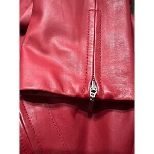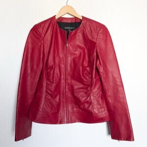 Lafayette 148 Leather Jacket Sz 4 Red Genuine Ruched Full Zip Y2K Small