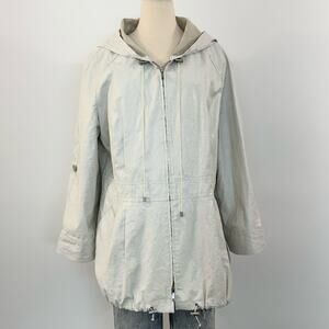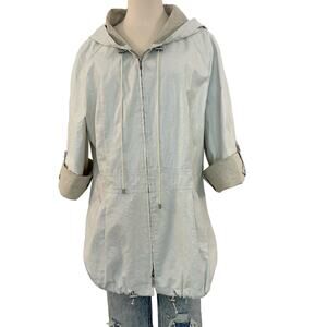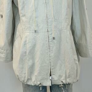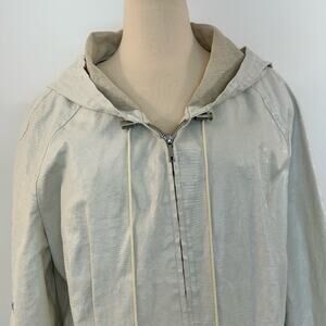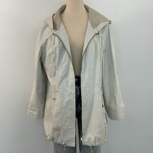 Lafayette 148 Linen Embossed Faux Leather Full Zip Jacket Rain Coat White L/XL