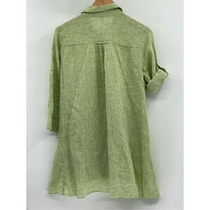 Lafayette 148 Linen Tunic Top Shirt Button Down Women 6 Green Collar Oversized