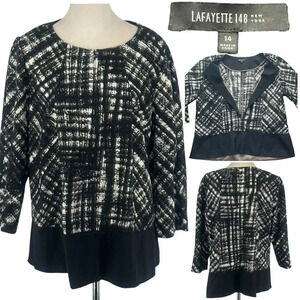Lafayette 148 Long Sleeve 3/4 (Not all the way) Front Zip Virgin Wool Blend Jacket Blouse Top Lagenlook Womens Size 14 Classic Designer Grandmacore Momcore Holiday Winter Cottagecore Corpcore Office Business Casual Contemporary
