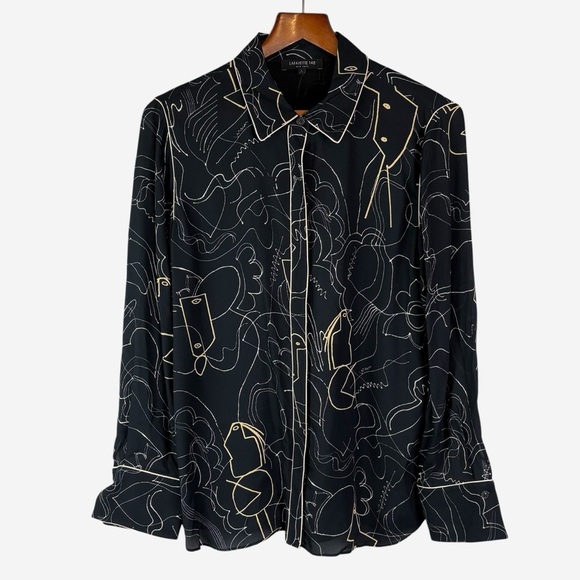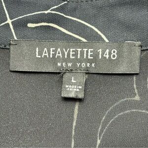 Lafayette 148 Long Sleeve Hidden Button Down Printed Blouse Size L Black Viscose