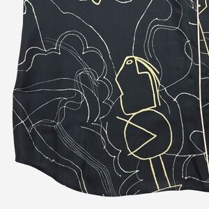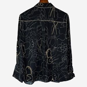 Lafayette 148 Long Sleeve Hidden Button Down Printed Blouse Size L Black Viscose