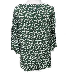 Lafayette 148 Lorelei Mini-Inspired Laurel Blouse. Size S, green and white floral print. Boatneck, elasticized sleeves at the elbow. Relaxed fit. 100% viscose, dry clean. Purchased from Neiman Marcus. Smoke free home, will ship in 1-3 business days.