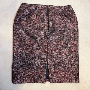 Lafayette 148 Metallic Animal Print Skirt Red Grey Silver Black Size 8 EUC