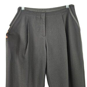 Lafayette 148 Millennium Crepe Dress Pants Trousers Black Straight Leg High Waisted High Rise Pleated Satin Trim Pockets Lightweight Women’s