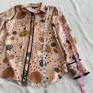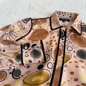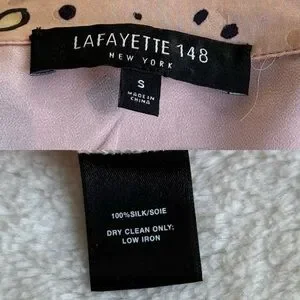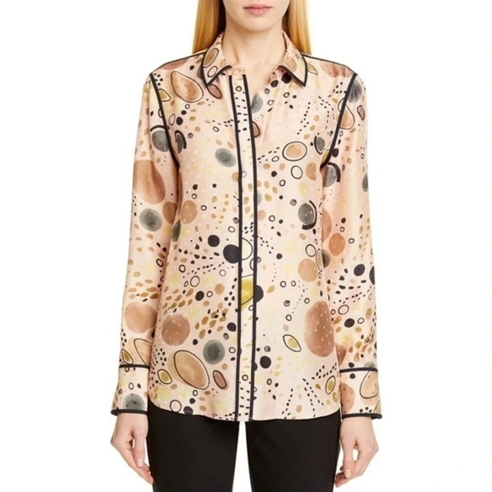 Lafayette 148 NWOT Silk Scottie Print Collar Pink Brown Long Sleeve Shirt S