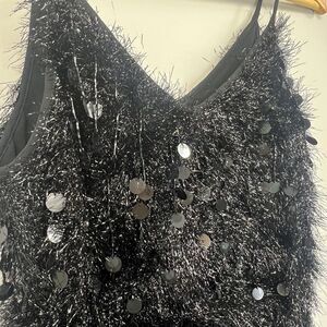 Lafayette 148 NY Black Averie Fringe Sequin Tank Top Sz XS Bling Party Camisole