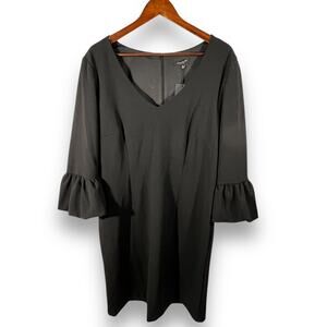 Lafayette 148 NY Black Dress V Neck Bell Sleeve Knee Length Sheath XL NWT