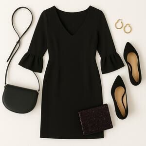 Lafayette 148 NY Black Dress V Neck Bell Sleeve XL NWT #PolishedStyle #Lafayette148 #Workwear