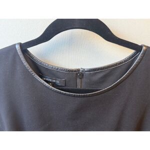 Lafayette 148 NY Black Sheath Dress Real Leather Stripe Detail Size 8 Cocktail