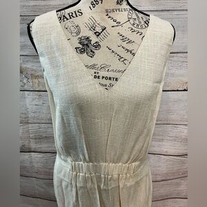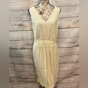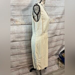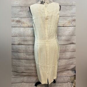 Lafayette 148 NY Dress Linen Blend V-neck Cream Color Size Small