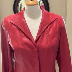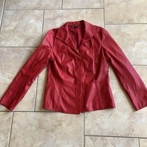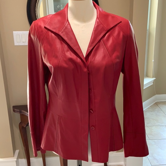 Lafayette 148 NY Red “super soft” lambskin leather jacket with hidden buttons down front, tailored fit, longer length. Great condition too! These sell New for $1400.