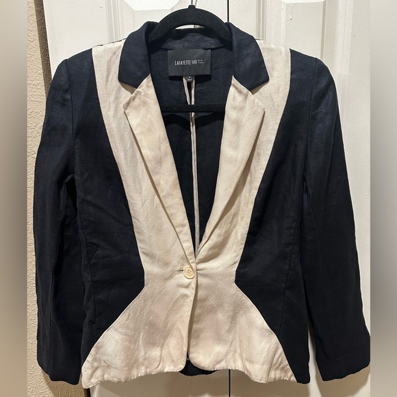 Lafayette 148 NY Linen/Silk Blazer Black/Cream Casual Office Career Academia ,6