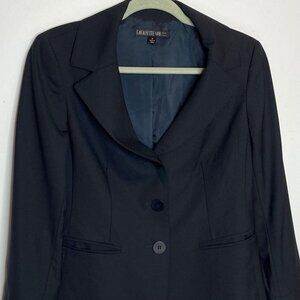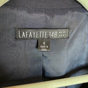 Lafayette 148 NY Navy 3 Button Open Cuff Career Wool Bnd Blazer Jacket Sz 4 READ