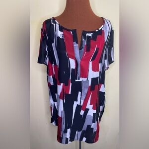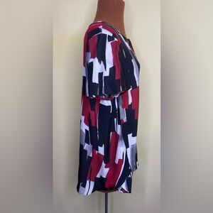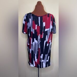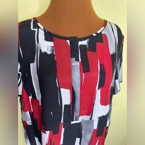Lafayette 148 NY Silk Red Black Abstract Brushstroke Print Tunic Blouse Size 10