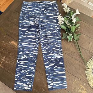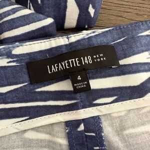 Lafayette 148 NY Stanton Cropped Stretch Pants in Blue Striped Print size 4