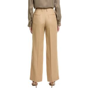 Lafayette 148 NY Sullivan Wide Leg Pant Tan Linen Size 10 Flat Front Dress Work