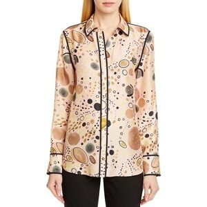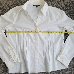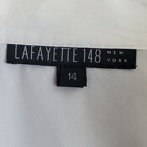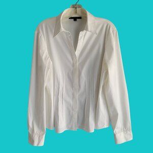 Lafayette 148 NY White Button Up Shirt Womens Stretch Cotton Pleated Size 14