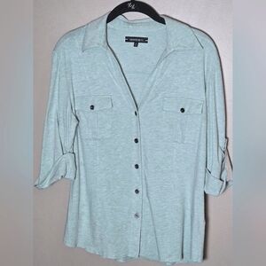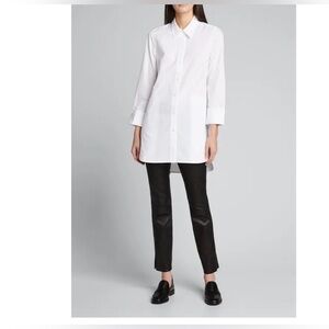 Lafayette 148 NY White Button Up Shirt Womens Stretch Cotton Pleated